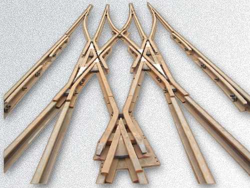 煤炭部標準設計、66型道岔65種規(guī)格、93型道岔166種規(guī)格 本公司可為用戶設計各種非標道岔。