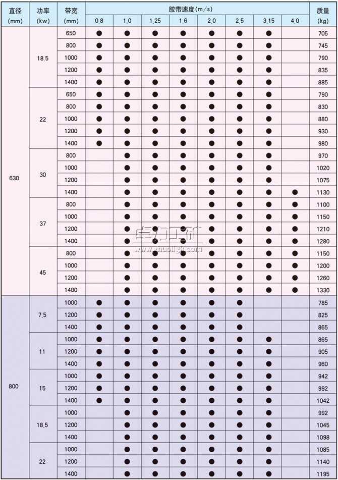 YDB-h隔爆型油冷式電動(dòng)滾筒基本參數(shù)表、外形尺寸表、安裝尺寸