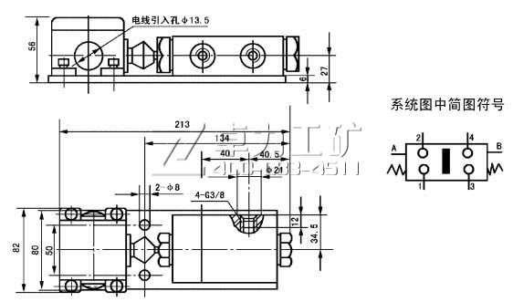 壓差開關(guān)的閥體和行程開關(guān)組裝在一塊底板上。潤滑脂在壓力的作用下從主管道B進入壓差開關(guān)閥體活塞的右腔,主管道A卸荷。一旦兩條主管道的壓差達到5MPa時,活塞克服左腔內(nèi)彈簧力向左移動,并推動行程開關(guān),使觸點1和2閉合,發(fā)出脈沖訊號至系統(tǒng)電控箱,責(zé)令換向閥換向,這時主管道A受壓,B卸荷,活塞在二端腔內(nèi)彈簧的作用下對中,行程開關(guān)觸點1和2斷開,觸橋處中位。系統(tǒng)開始第二周期工作,一旦主管道A和B間壓差又達到5MPa時,活塞向右移動,行程開關(guān)觸點3和4閉合,脈沖訊號再次使系統(tǒng)中的換向閥換向,開始下次循環(huán)工作