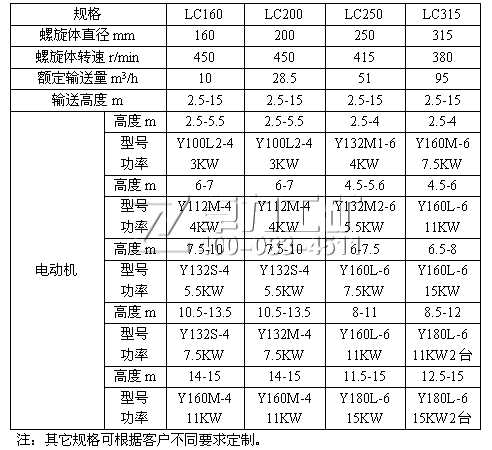 LC型垂直螺旋給料機技術(shù)參數(shù)