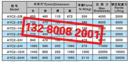 AYC2系列全自動永磁起重器技術參數(shù)表