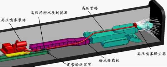 (2)降塵效率高:系統(tǒng)采用高壓電磁閥,動作響應(yīng)時間短,且水壓高達(dá)12MPa,可實現(xiàn)高壓噴霧降塵,使降塵效率提高到90%以上。