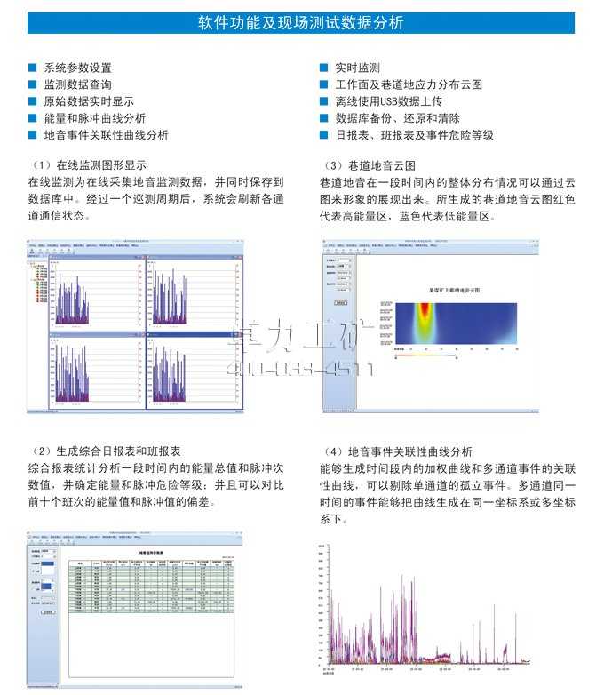 基本功能:在煤礦開采中,煤巖體彈性變形能的瞬時釋放而產(chǎn)生突然劇烈破壞的動力現(xiàn)象稱為“沖擊地壓”或“沖擊礦壓”。采場沖擊地壓已成為引發(fā)煤礦地質(zhì)災(zāi)害的重要因素之一。沖擊地壓發(fā)生是一個能量漸變到突變的過程,即煤巖體從微小破裂到破壞的過程,這個過程中伴隨著能量的釋放引起的彈性波向外傳播(即地音)的過程。本系統(tǒng)通過監(jiān)測地音事件參數(shù)指標的變化,用以確定監(jiān)測范圍內(nèi)煤巖體的應(yīng)力狀態(tài)。監(jiān)測分析軟件(SCMPS)以圖表的形式顯示地音事件的能量、頻度,并做各種分析運算工作,得出班累計地音事件數(shù)、班累計能量、平均能量、生成報表打印。通過對監(jiān)測數(shù)據(jù)的綜合分析,可以獲取采場動力災(zāi)害的前兆信息,對采場動力災(zāi)害進行預(yù)測預(yù)報。目前國內(nèi)應(yīng)用的地音監(jiān)測系統(tǒng)大多數(shù)都是引進國外的,如波蘭的SAK系統(tǒng)、ARES-5/E監(jiān)測系統(tǒng),由于成本、服務(wù)等因素影響在推廣方面受到了限制。該系統(tǒng)在借鑒國外技術(shù)的基礎(chǔ)上進行了創(chuàng)新,其優(yōu)良的性價比和專業(yè)化的服務(wù)將帶給用戶滿意的應(yīng)用效果。