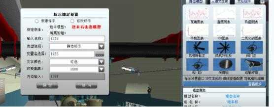 圖4 三維場(chǎng)景中的工作標(biāo)牌、傳感器展示(傳感器上的有數(shù)據(jù))