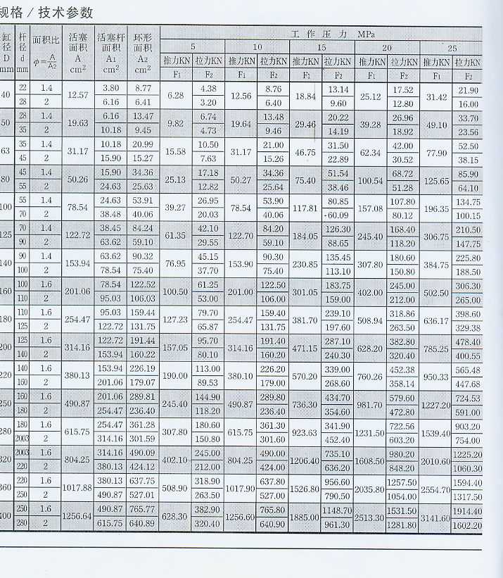 C25、D25系列液壓缸主要技術(shù)性能