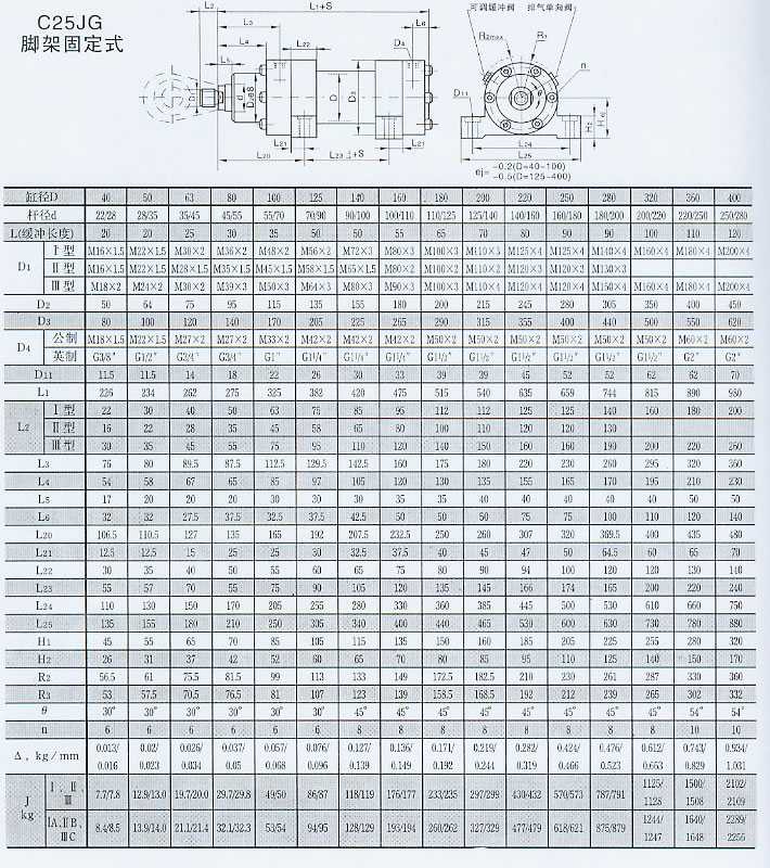 ·C25、D25系列全部可配置接近開關(guān),C25系列缸徑D=50~400(除D=40外)均可配置內(nèi)置式位移傳感器。