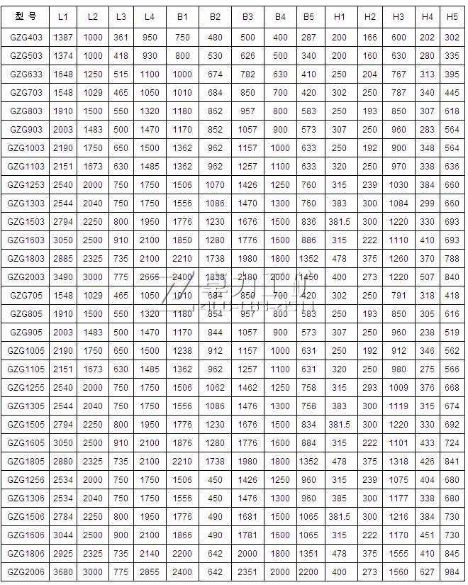GZG1255 | 1250×2000×315 | 500 | 700 | 350 | 5 | ZG618 | 2×2.97 | 2×1.1 | 1002 | |||